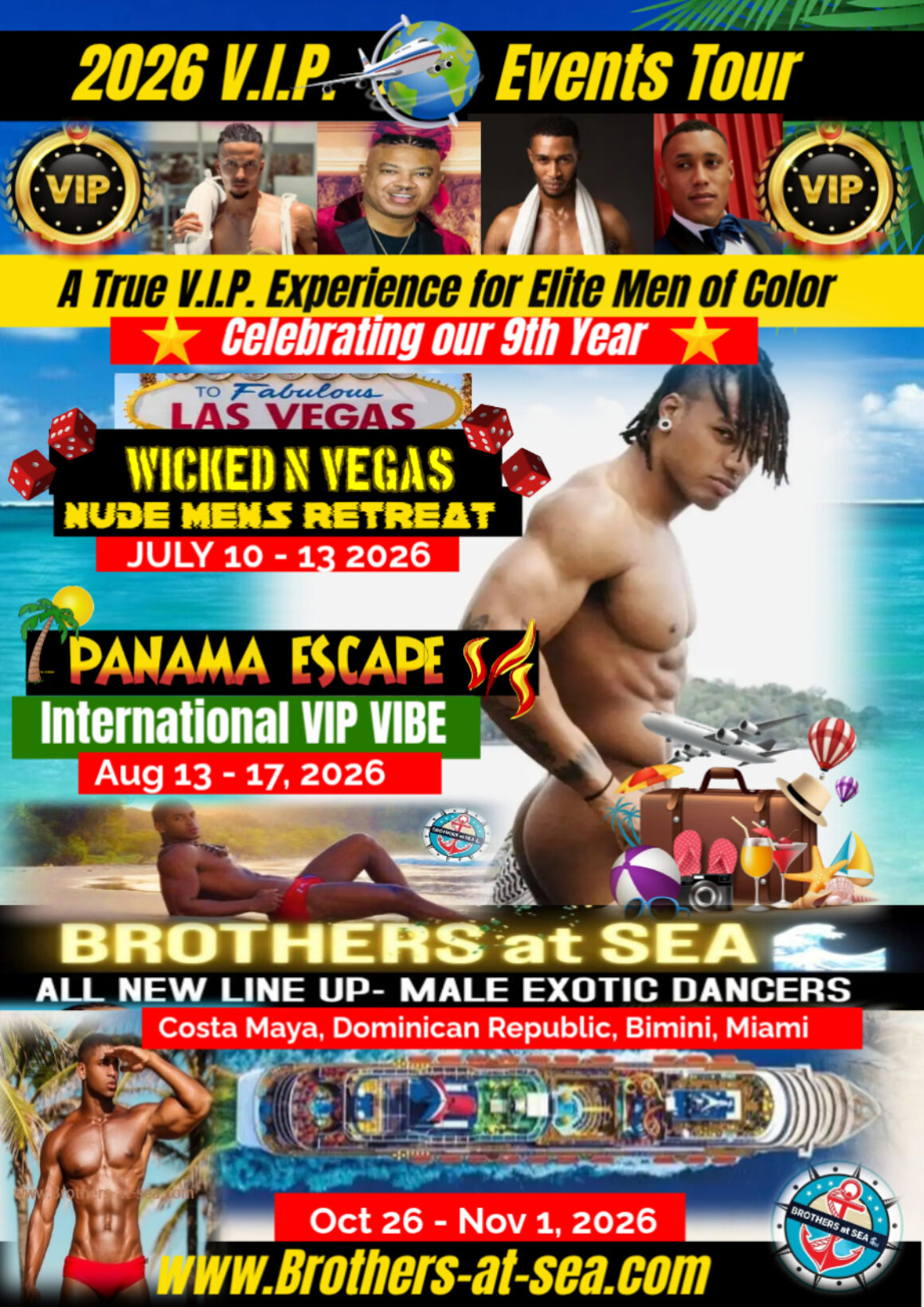 A Private Men’s only βEliteβ Exclusive International V.I.P.π« Style Travel Organization with an Erotic Twist. We specialize in “LUXURY” V.I.P.π« Style Land Based Events as well as our popular annual award winning “signature” BROTHERS at SEA π Halloween Luxury Party Cruise.